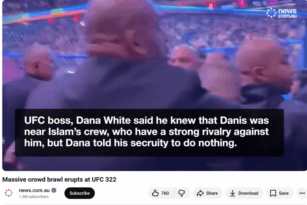 Adams embedded a video of the fight from an Australian news outlet in his social media post. The post includes a statement which reads, “UFC boss, Dana White said he knew that Danis was near Islam’s crew, who have a strong rivalry against him, but Dana told his security to do nothing.”