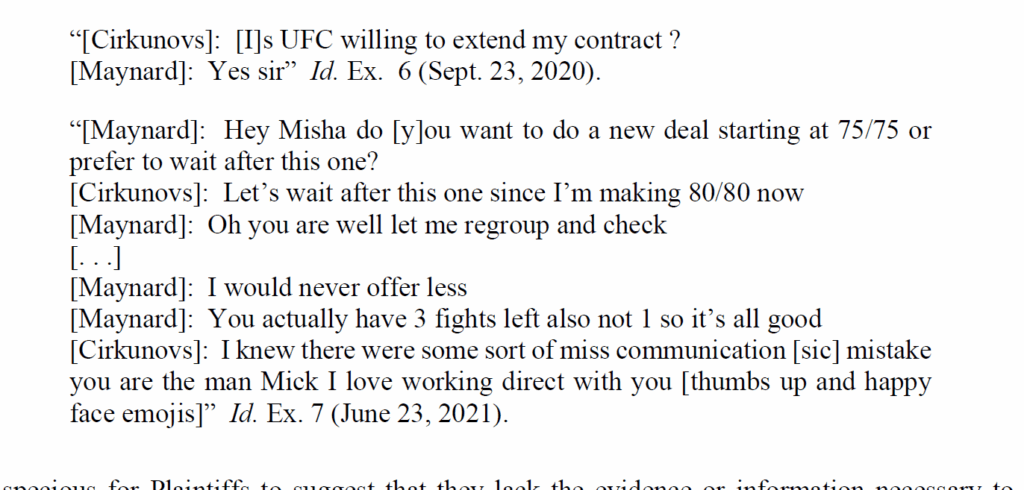In its legal filing Defendants provide a text message exchange between Cirkunov and Mick Maynard which suggests that he was under contract.